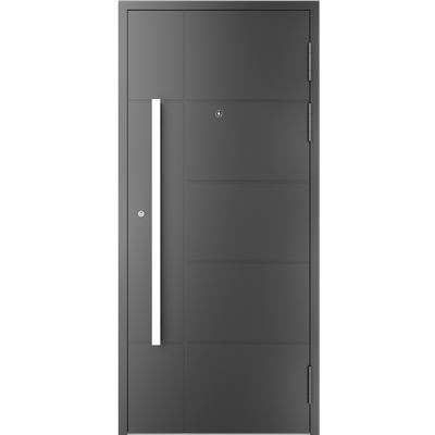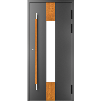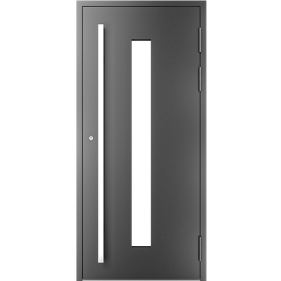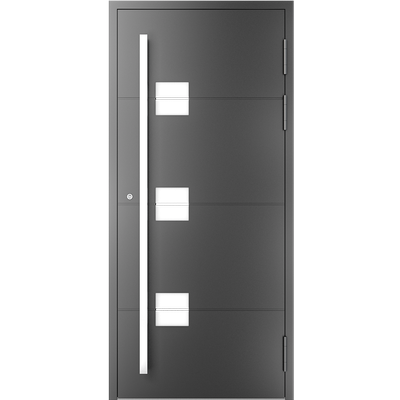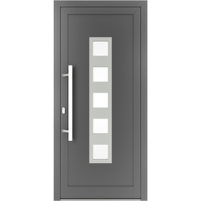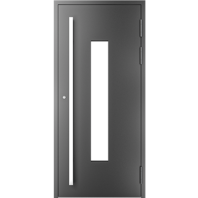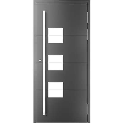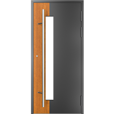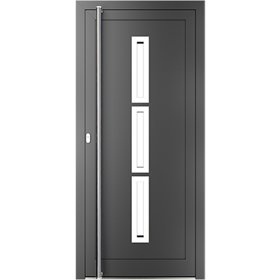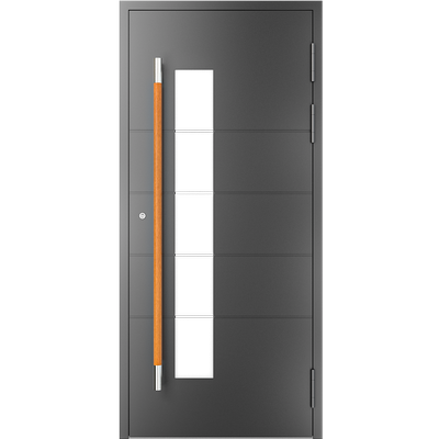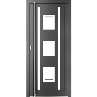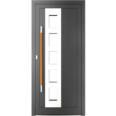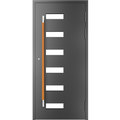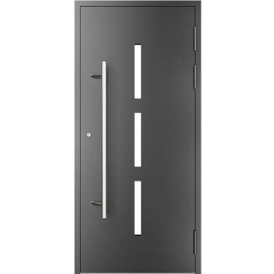EIGENSCHAFTEN Abstandhalter In Standardausführung Abstandhalter aus verzinktem Stahl. Optional Swisspacer Ultimate in verschiedenen Farben. Beschläge Automatischer Dreipunkte-Treibriegelverschluss MACO. 3 Bänder aus Aluminium, sehr beständig. Einpunkt-Schnappschiebe-Schloss mit Haken als Option. Dichtungen Scheibendichtungen und Anschlagdichtungen aus EPDM. Farbgebung gemäß der RAL Palette und holzähnliche Furniere der Aluprof ColorCollection Glas Bis zu 50 mm breit; In Standardausführung Einfachverglasung mit Wärmedurchgangskoeffizient Ug = 1,0 W/(m²K) gemäß PN-EN674. Möglicher Einsatz von Dreifachverglasung mit Ug = 0,5 W/(m2K) oder eines Vierscheibenpakets mit Kryptonfüllung, Ug = 0,3 W/(m2K). Optional spezielle Glasarten: für die größere Schalldämpfung, gehärtet, Sicherheits-, Einbruchhemmungs-, Zier- und Sonnenschutzglas. Breite Auswahl von Türfüllungen. Profil Dieses Dreikammerprofil mit Einbautiefe von 70 mm hat eine thermische Trennung aus dem mit Glasfaser verstärkten Polyamid; erhöhte Wärmeisolierung (für das System MB-70HI) dank Einsatz von speziellen Isolierungseinlagen innerhalb der Profile und im Zwischenscheibenraum. Aluminiumtüren MB-70HI