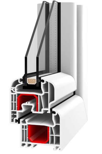 | Profil | 5-Kammerprofile, Rahmen und Flügel gefertigt ausschließlich aus Primärrohstoff, Klasse A, Einbautiefe 70 mm. |