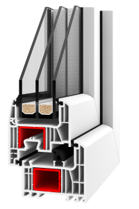 EIGENSCHAFTEN Abstandhalter In Standardausführung Abstandhalter aus verzinktem Stahl, optional Swisspacer Ultimate in verschiedenen Farben. Beschläge MACO MULTI MATIC KS mit zwei Einbruchsicherungszapfen in Standardausführung; Beschichtung in Silber-Look mit linienförmigen Vertiefungen an den Schiebebeschlägen; optional verdeckte Scharniere in der Einkerbung des Beschlags sowie Lösungen in der Einbruchschutz-Klasse RC 2 und RC 2N, ausgestattet mit einer Fehlbedienungssperre des Fenstergriffs und einem Flügelheber*, Microventilierung**. * je nach Fensterhöhe ** für Drehkipp- und Kippfenster Dichtungen Das Fenster wird mit dreifacher Dichtung versehen: außen und innen aus EPDM, Zentraldichtung aus geschäumtem EPDM. Die äußeren und inneren Dichtungen sind in Schwarz oder Grau erhältlich. Farbgebung Das System ist in der reichen Farbpalette der Renolit-Folien auf einem weißen, braunen und anthrazitfarbenen Kern erhältlich. Glas Verglasungsstärke bis 48 mm. In Standardausführung Glaspaket 4/18/4/18/4 mit Wärmedurchgangskoeffizient Ug = 0,5 W/(m2K). Einsatz eines Vierscheibenpakets mit Ug = 0,3 W/(m2K) auf Wunsch Einsatz von speziellen Glasarten: für die größere Schalldämmung, gehärtet, Sicherheits-, Einbruchhemmungs-, Zier- und Sonnenschutzglas Profil 7-Kammerprofil, Rahmen und Flügel gefertigt ausschließlich aus Primärrohstoff, Klasse A, Einbautiefe 82 mm. Schalldämmung Rw = 35-46 dB (je nach eingesetztem Glaspaket). Verstärkungen In Standardausführung werden der Rahmen mit geschlossenem Profil verstärkt werden. Bei dieser Rahmenverstärkung werden die Einbruchsicherungszapfen an die Stahlverstärkung montiert. Wärmedämmung Uw = 0,59 W/(m2K)* mit Glasfaserverstärkung für mit Krypton gefüllte Verglasung, Koeffizient Ug = 0,3 Uw= 0,81 W/(m2K)* mit Stahlverstärkung und Glaspaket Ug = 0,5 W/(m2K). *Für ein Fenster mit den Maßen 1230x1480 mm gemäß CSI in Tschechien