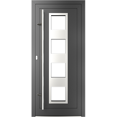 EIGENSCHAFTEN Abstandhalter In Standardausführung Abstandhalter aus verzinktem Stahl, optional Swisspacer Ultimate in verschiedenen Farben. Beschläge Automatischer Dreipunkte-Treibriegelverschluss MACO. 3 Bänder aus Aluminium, sehr beständig. Dichtungen Das Fenster wird mit dreifacher Dichtung versehen: außen und innen aus EPDM und die Zentraldichtung aus geschäumtem EPDM. Die äußeren und inneren Dichtungen sind in Schwarz, Grau oder Graphit erhältlich. Farbgebung Renolit-Folien in Farben auf weißem oder braunem Profil. Glas Verglasungsdicke bis 48 mm; In Standardausführung Glaspaket 4/18/4/18/4 mit Wärmedurchgangskoeffizient Ug = 0,5 W/(m2K); möglicher Einsatz eines mit Krypton gefüllten Vierscheibenpakets mit Ug = 0,3 W/(m2K); Einsatz von speziellen Glasarten: für die zusätzliche Schalldämpfung, gehärtet, Sicherheits-, Einbruchhemmungs-, Zier- und Sonnenschutzglas. Profil 7-Kammerprofile des Rahmens und 5-Kammerprofile für den Flügel, gefertigt ausschließlich aus Primärrohstoff, Klasse A, Einbautiefe 82 mm. Schalldämmung Rw = 35-46 dB je nach eingesetzter Türfüllung. Wärmedämmung Uw = 0,9 W/(m2K)* * Für eine Tür mit den Maßen 1000x 2100 mm gemäß CSI in Tschechien